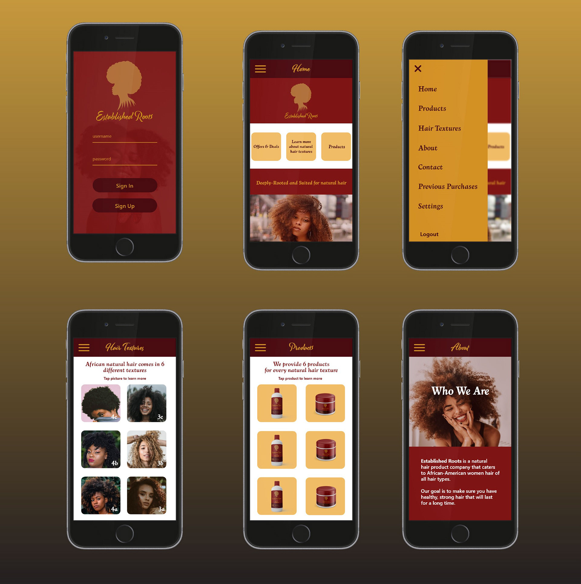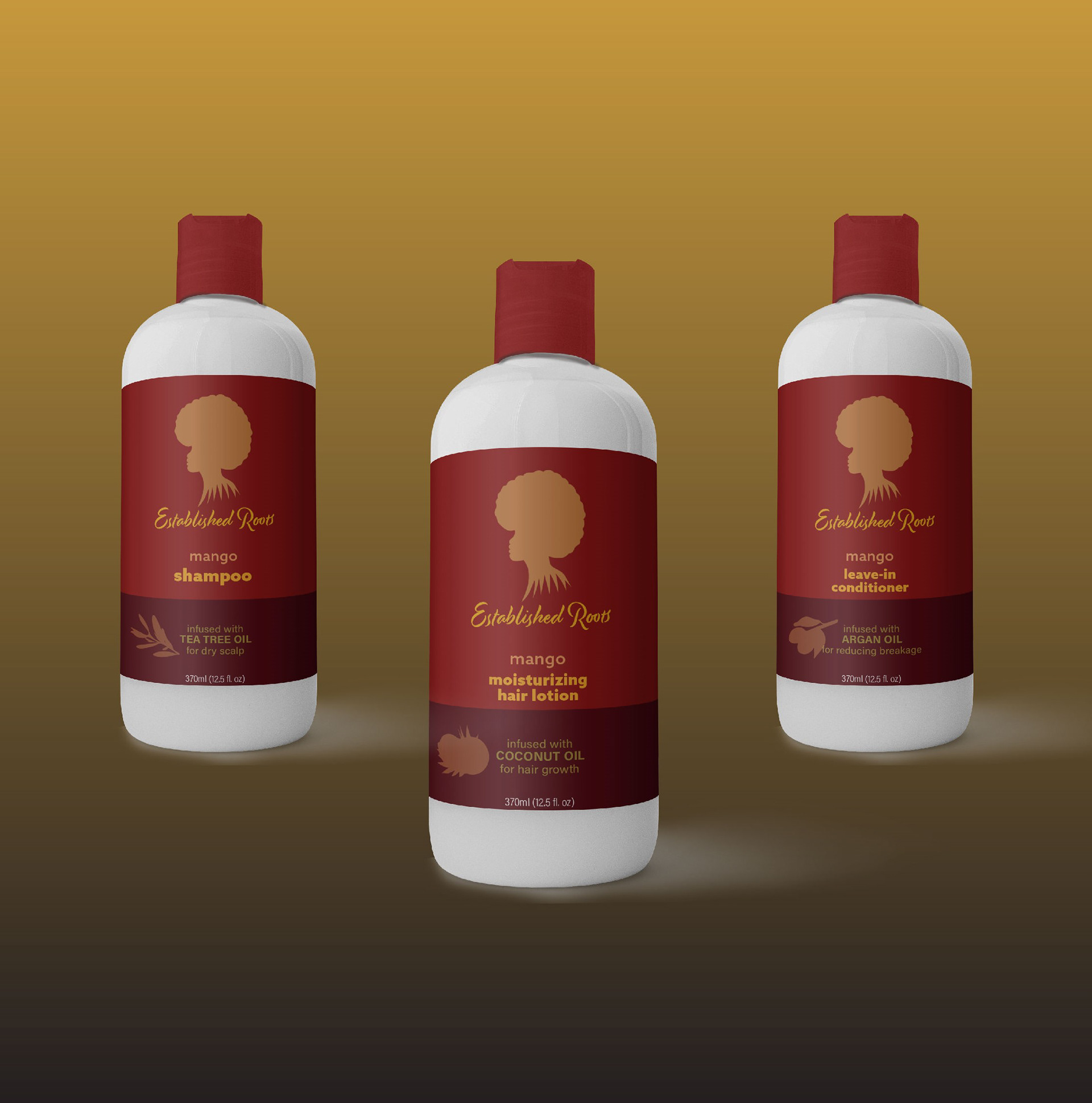 Established Roots is a natural hair care brand that produces shampoos, conditioners, and gels for hairs of textures from 3a-4c. I wanted to create something that not only I can relate to but that others of natural hair can identify with.