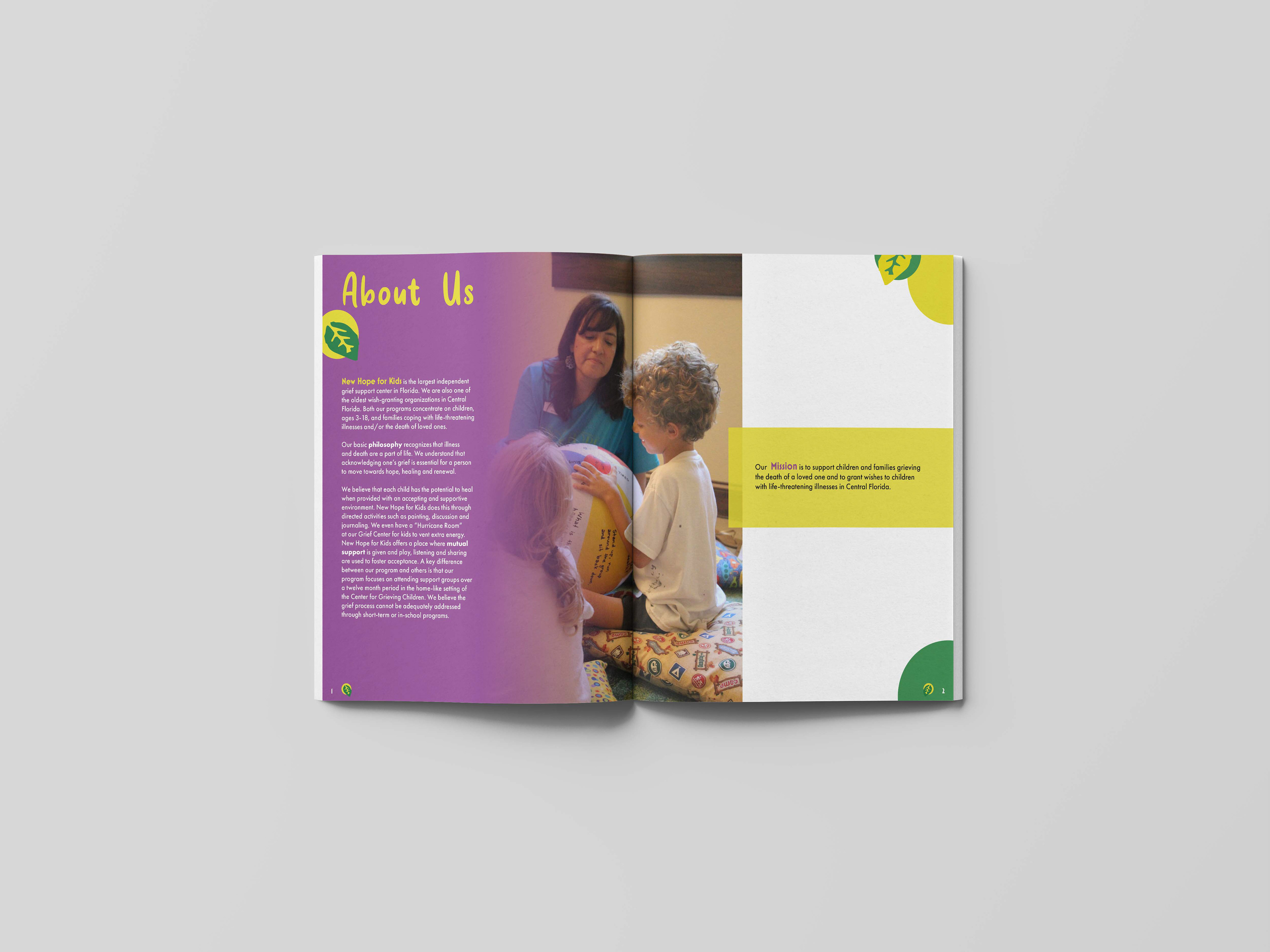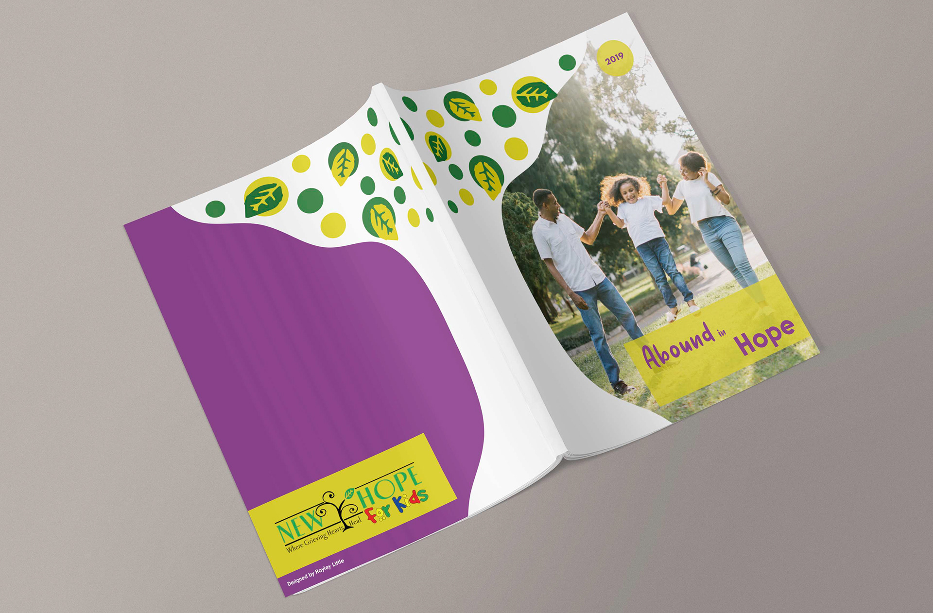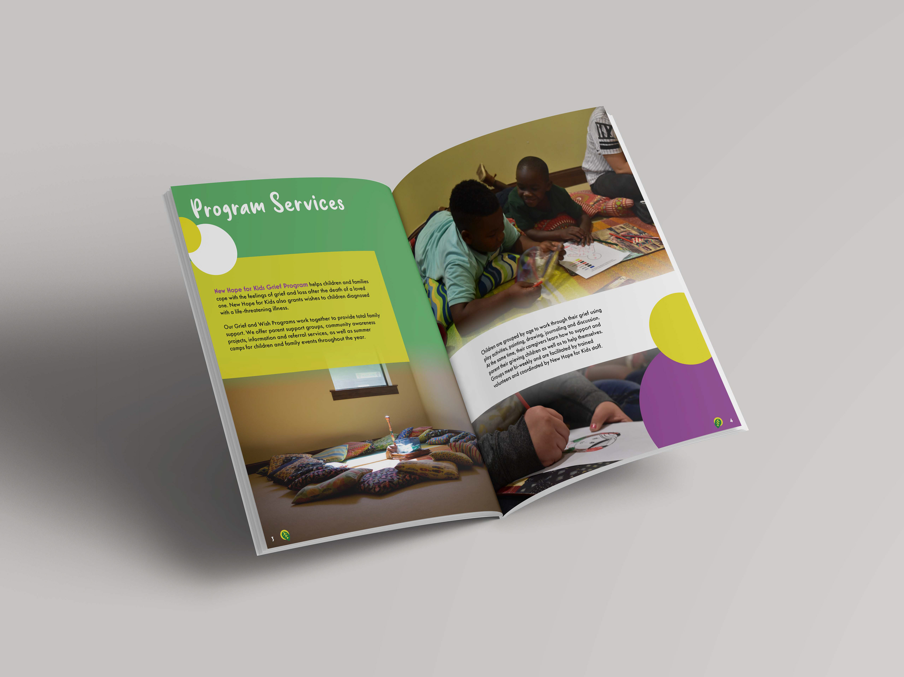 Annual Report project of non-profit organization, New Hope For Kids. This organization centers around grieving children